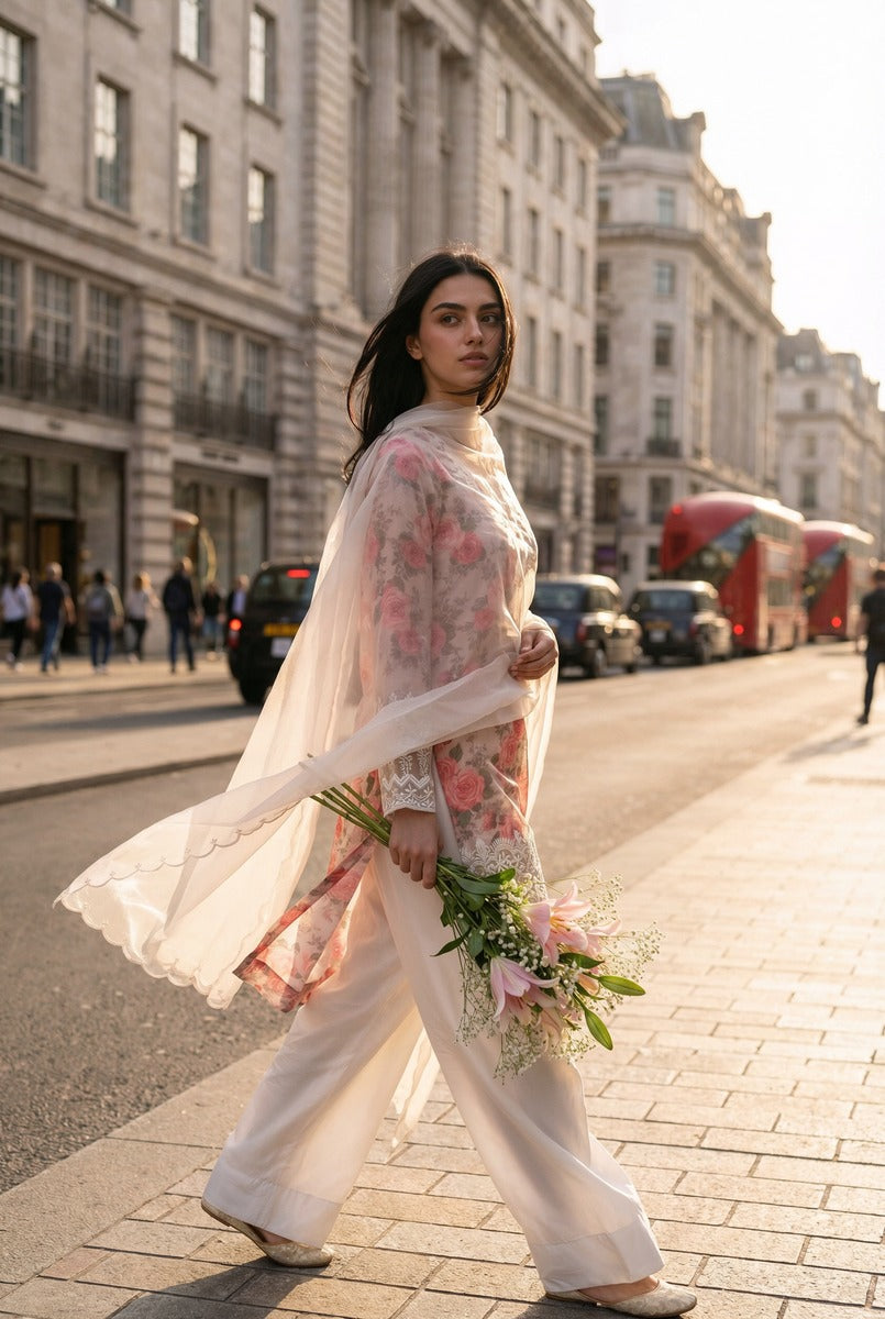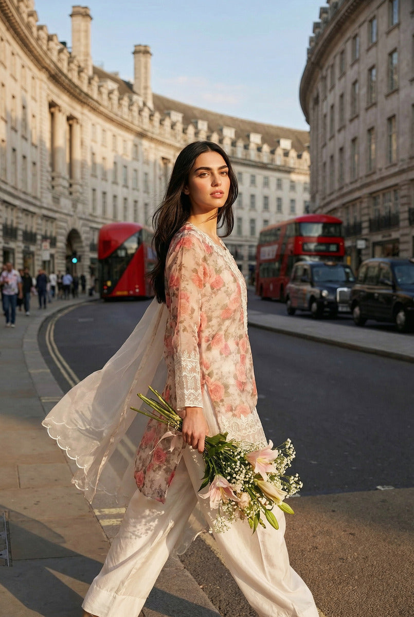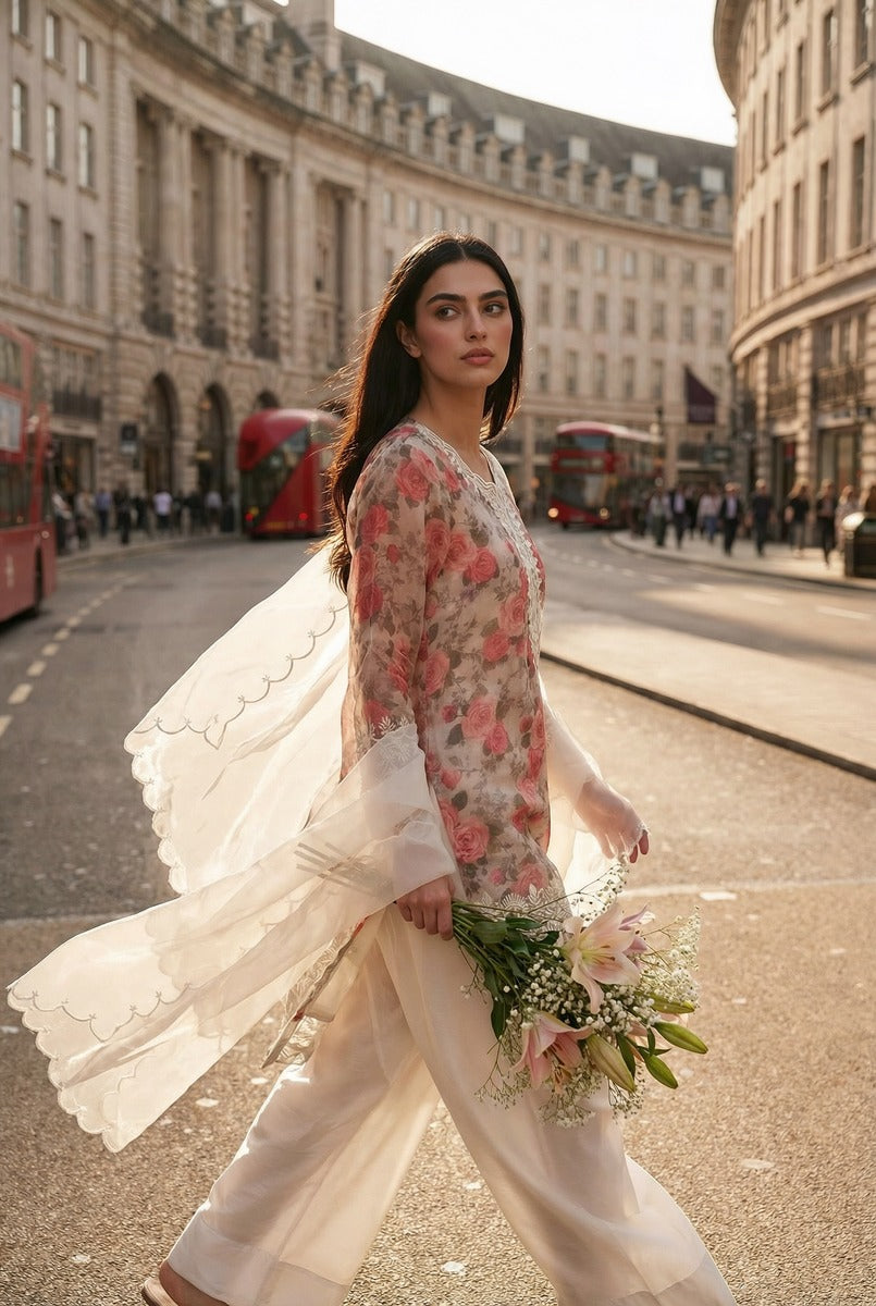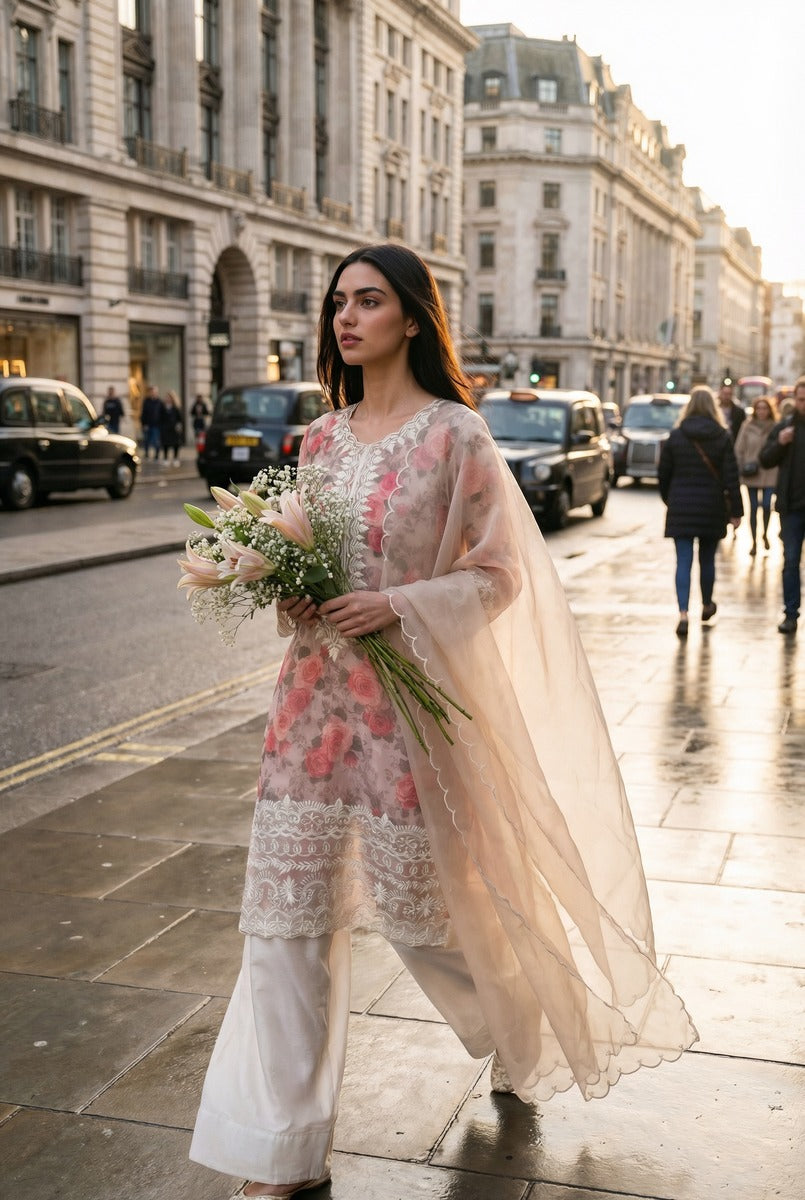 Serene Bloom captures the poetry of modern femininity through timeless craft. Designed for the woman who values effortless luxury, this ensemble features a delicate floral printed silk inner, gracefully layered with pure organza for a refined, ethereal finish.
